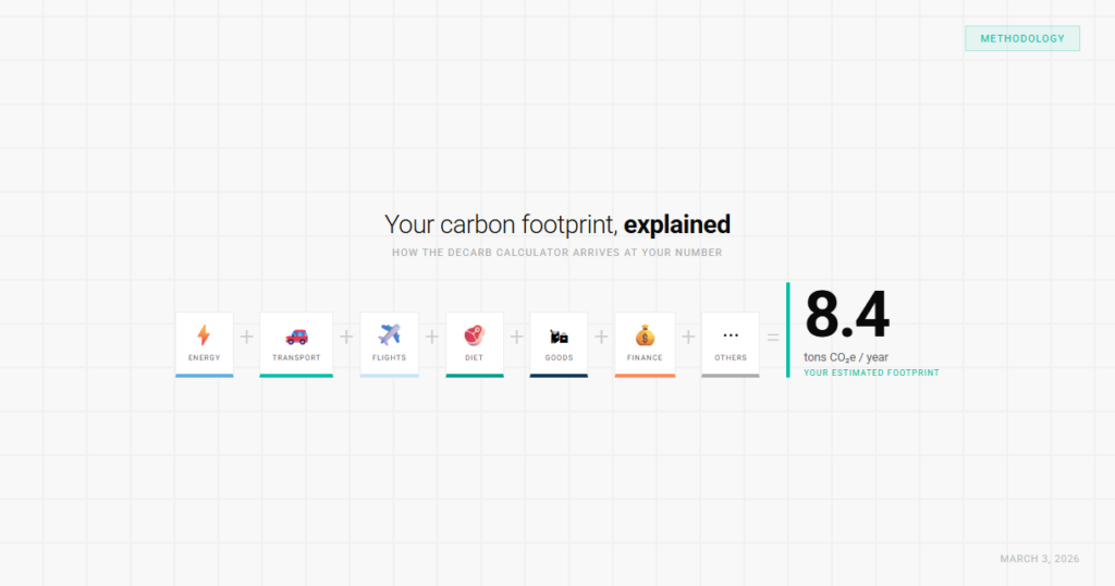 Understanding where your emissions come from is the first step toward reducing them. This post explains exactly how the Decarb calculator arrives at your number — every assumption, every data source, every limitation. What we measure The Decarb calculator covers eight emission categories: flights, home energy, food, waste, goods and services, financed emissions, ground transport, […]