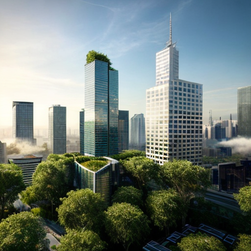 Climate mitigation – Green city with skyscrapers